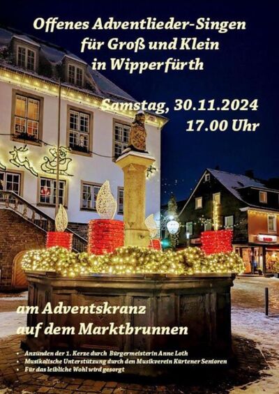 | Information | Offenes Adventlieder-Singen für Groß und Klein. Anzünden der ersten Kerze am Adventskranz. |
