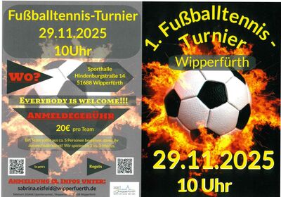 | Information | ⚽️ Fußballtennis-Turnier in Wipperfürth! Am 29. November 2025 ist wieder Teamgeist gefragt! Ab 10 Uhr startet unser Fußballtennis-Turnier in der Sporthalle Hindenburgstraße 14, 51688 Wipperfürth. Egal ob Anfänger*in oder Profi – mitmachen können alle, die Lust auf Spaß, Bewegung und faire Spiele haben! ⚽️ Ort: Sporthalle Hindenburgstraße 14 Datum: 29.11.2025 Start: 10:00 Uhr Anmeldung & Infos: Hansestadt Wipperfürth – Jugendamt Sabrina K. Eisfeld sabrina.eisfeld@wipperfuerth.de Wupperstraße 12, 51688 Wipperfürth |