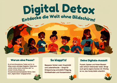 | Information | So oft sind Smartphone, Tablet und Co. im Alltag unsere ständigen Begleiter. Dabei kann „immer online, immer erreichbar sein“ zu innerer Unruhe, Stress und Konzentrationsschwierigkeiten führen. Dem kann „Digital Detox“ entgegenwirken. Denn: Für eine bestimmte Zeit einfach mal offline zu gehen, schafft Raum für Erholung, Kreativität und analoge Aktivitäten. Ein idealer Moment, um gemeinsam mit anderen eine entspannte Auszeit von der digitalen Dauerbeschallung zu nehmen und in eine behagliche Gegenkultur einzutauchen. Auf dem Programm ohne Handy und Tablet stehen Lesen (Bücher/Zeitung/Comic), Puzzeln, Spielen und Malen/Basteln oder einfach miteinander reden. Bringt euch gerne eigene Sachen mit. Wichtig ist nur, das Handy bleibt unberührt. Vielleicht sperren wir es auch einfach ein. Die Veranstaltung ist kostenlos. Eine Anmeldung hierfür ist jedoch erforderlich. |